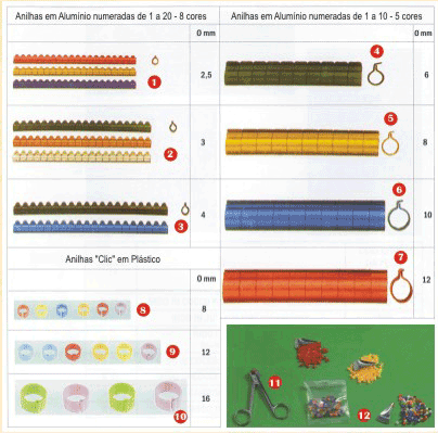 Anilha Alumínio Ø 10 mm P/ Pombos, Faisões e Patos